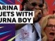 England manager Sarina Wiegman is surprised by her favourite artist Burna Boy during celebrations for the Lionesses' Euro 2025 win.